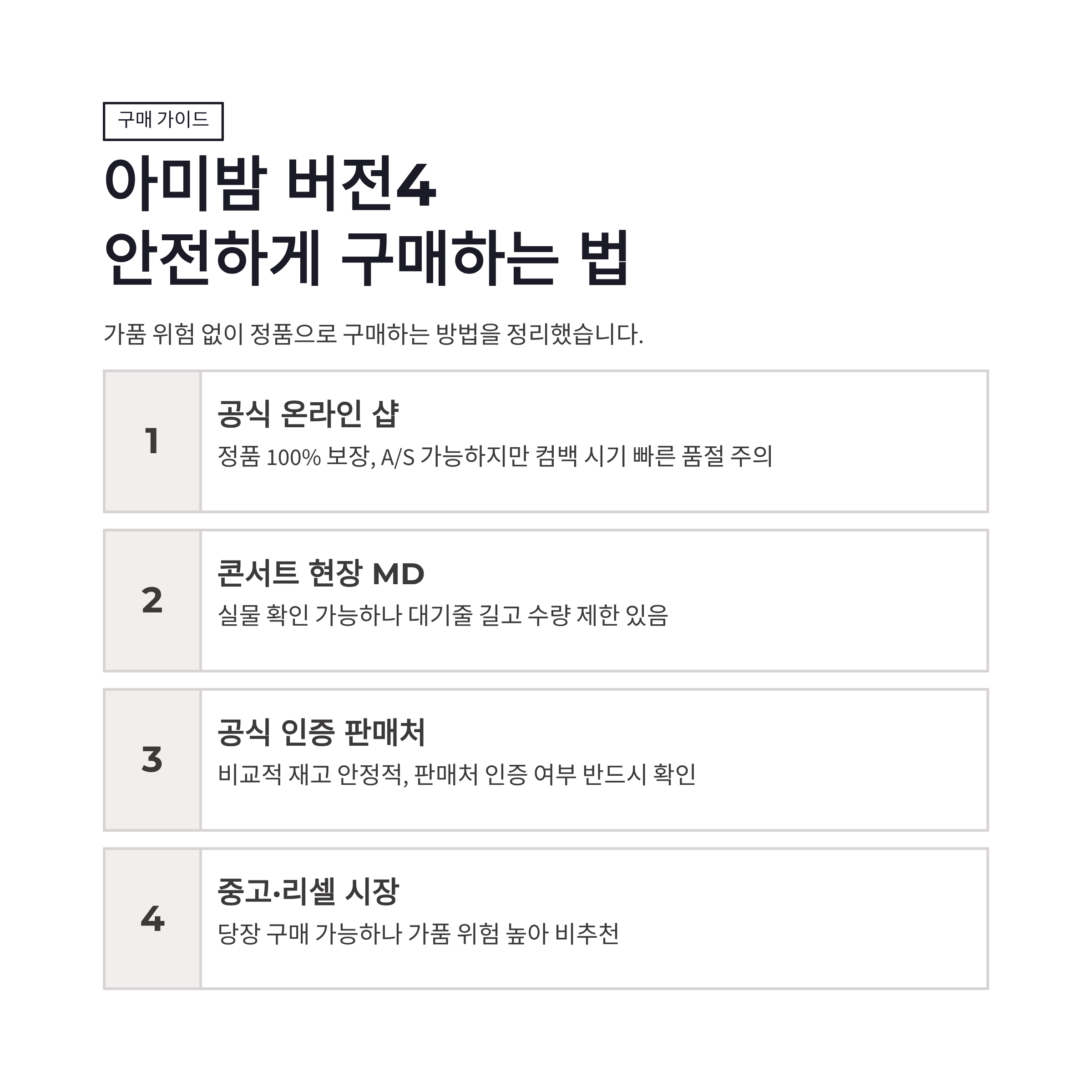 | 공식 인증 판매처 | 비교적 재고 안정 | 판매처 인증 여부 확인 |